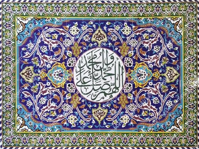 تابلو کاشی سفارشی طرح اسلیمی و ذکر صلوات بر خاتم پیامبران